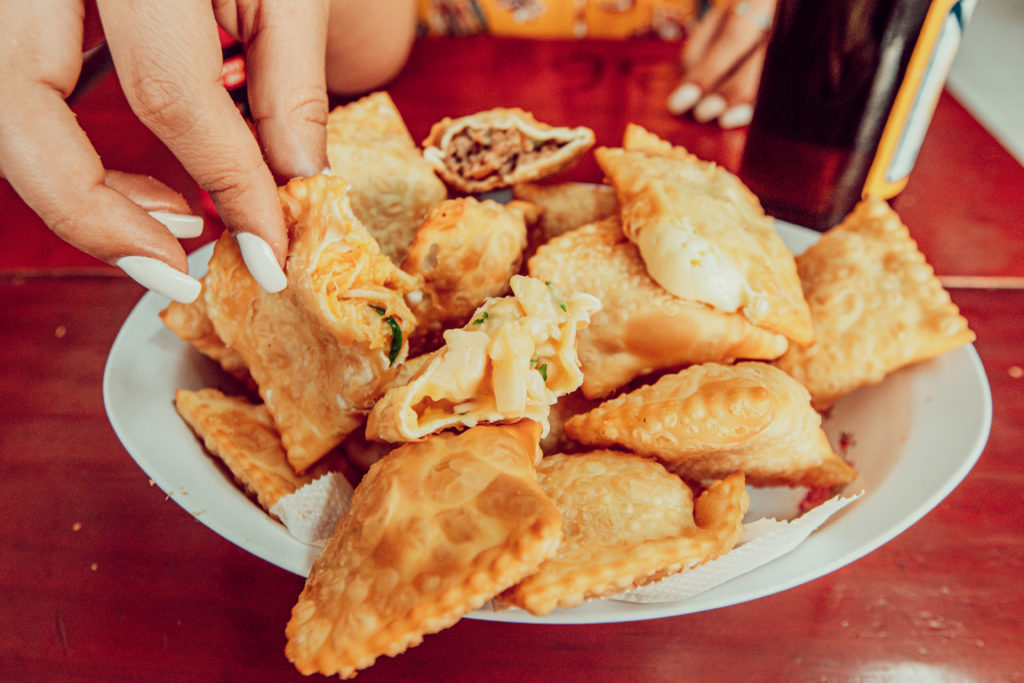 Pasteis com sabores exclusivos, carne, frango, queijo, palmito, bacalhau, napolitano, milho e banana.